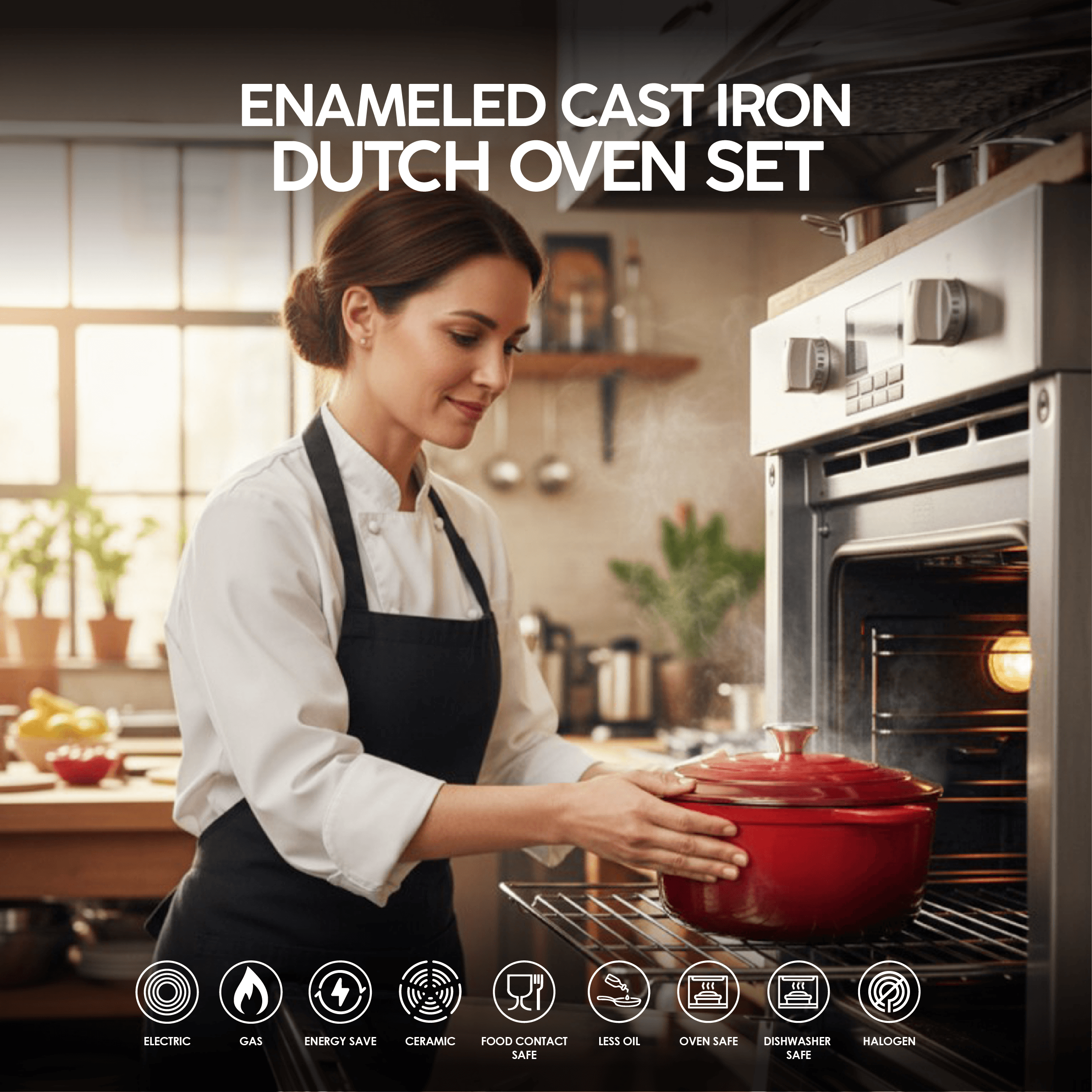 VAV GET Dutch Oven 7-PCS Set Casseroles are ideal for Slow, Low-Heat cooking, which is necessary for Tenderizing Vegetables and making Meat Stew. In addition, they offer the Optimum Heat for Baking No-Knead Bread recipes. Suitable for Gas, Ceramic, Electric and Induction Cooktops. Healthy and Convenient for Every Family.