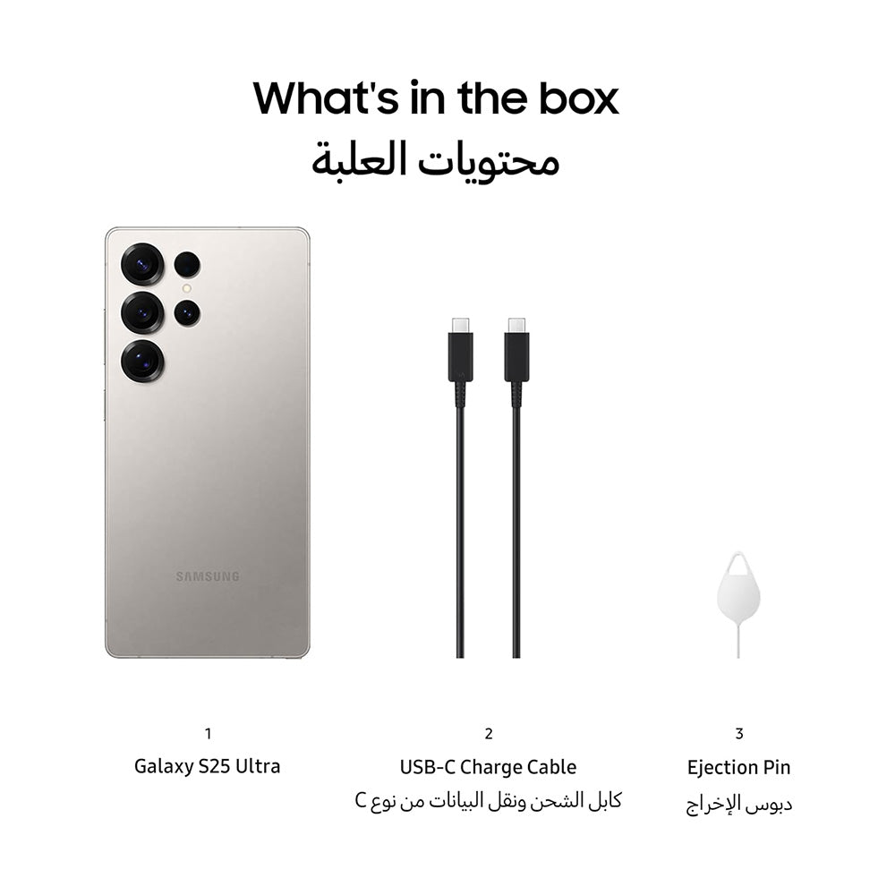 | What's in the Box | Samsung Galaxy S25 Ultra, USB Type-C Cable, SIM Ejection Pin, User Manual |
