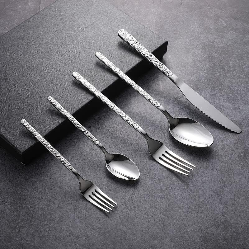 16-PIECE FLATWARE CUTLERY SET FOR 4 PEOPLE. The cutlery set includes; Table Spoons x 4, Dinner Forks x 4, Dinner Knives x 4, and Teaspoons x 4. HIGH-QUALITY STAINLESS STEEL. Durable and heat-resistant Premium Stainless Steel. Dishwasher safe. LONG SERVICE LIFE. Rust-resistant and scratch-resistant. Long service life guaranteed. Easy to use and clean. EXCELLENT SHAPE AND DESIGN. Smooth edges without rough spots. Comfortable handling. Elegant look. Proper weight. Standard sizes. SUITABLE COLOR. Color gives the cutlery set an elegant look. Suitable for every table at home, restaurant, cafe, bar, kitchen, and office.