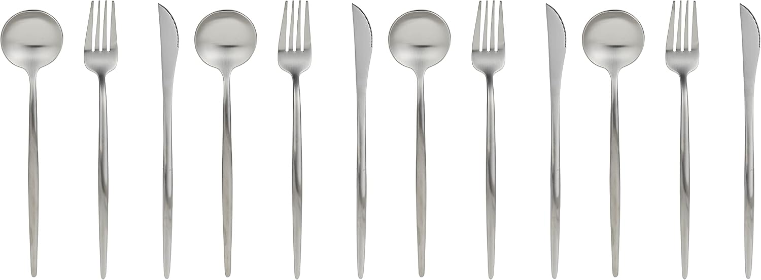 16-PIECE FLATWARE CUTLERY SET FOR 4 PEOPLE. The cutlery set includes; Table Spoons x 4, Dinner Forks x 4, Dinner Knives x 4, and Teaspoons x 4. HIGH-QUALITY STAINLESS STEEL. Durable and heat-resistant Premium Stainless Steel. Dishwasher safe. LONG SERVICE LIFE. Rust-resistant and scratch-resistant. Long service life guaranteed. Easy to use and clean. EXCELLENT SHAPE AND DESIGN. Smooth edges without rough spots. Comfortable handling. Elegant look. Proper weight. Standard sizes. SUITABLE COLOR. Color gives the cutlery set an elegant look. Suitable for every table at home, restaurant, cafe, bar, kitchen, and office.