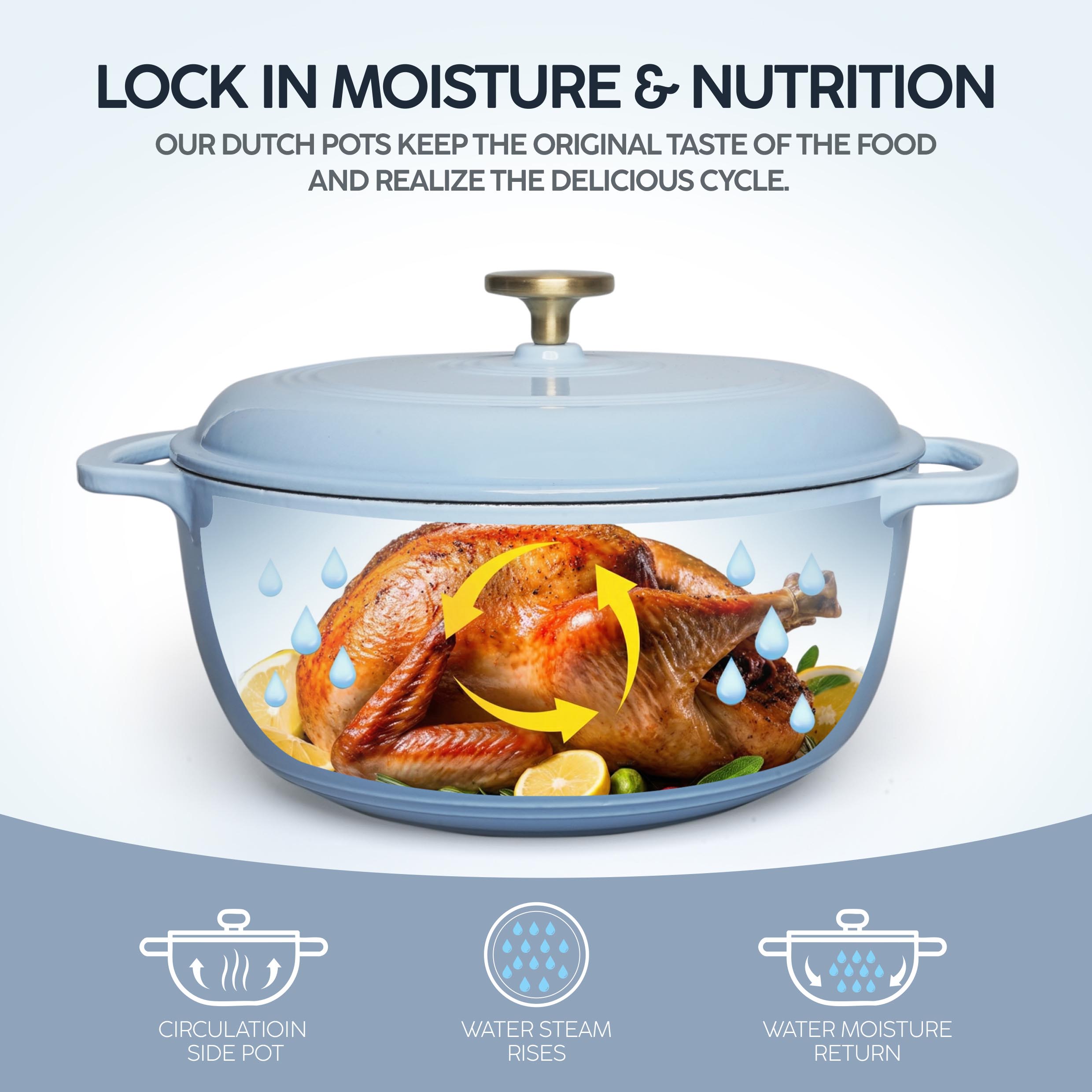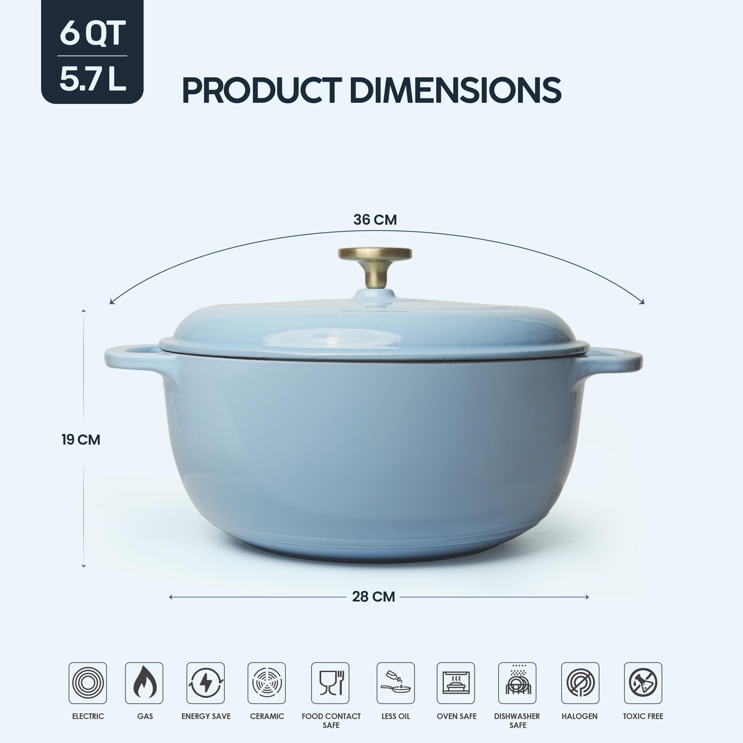 VAV GET 6QT Enameled Cast Iron Round Dutch Oven, Family Style Heavy-Duty Pre-Seasoned Cookware, Healthy & Safe Non-Stick, Oven & Stovetop Safe – Light Cornflower Blue