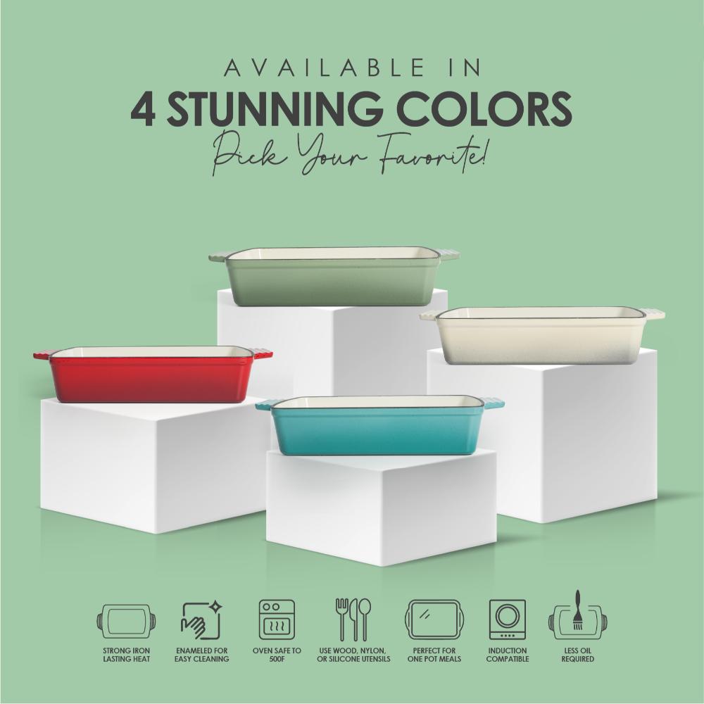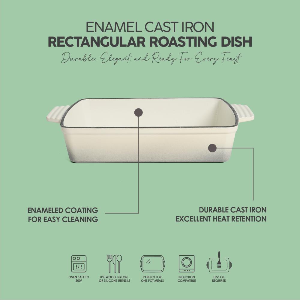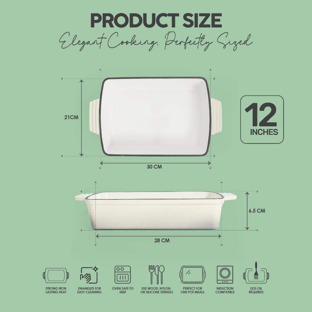 Elevate your cooking experience with the VAV GET Enamel Cast Iron Rectangular Roasting Dish (12-Inch, Cream) – a versatile, durable, and elegant addition to your kitchen. Crafted from premium cast iron with a non-stick enamel coating, this roasting dish ensures superior heat retention and even cooking, making it ideal for baking, roasting, and serving. Its sleek cream finish blends seamlessly into modern kitchens, while the easy-clean enamel interior prevents food from sticking. Perfect for everyday meals or special gatherings, this dish is oven safe up to 500°F and works on induction, gas, ceramic, and electric stovetops.